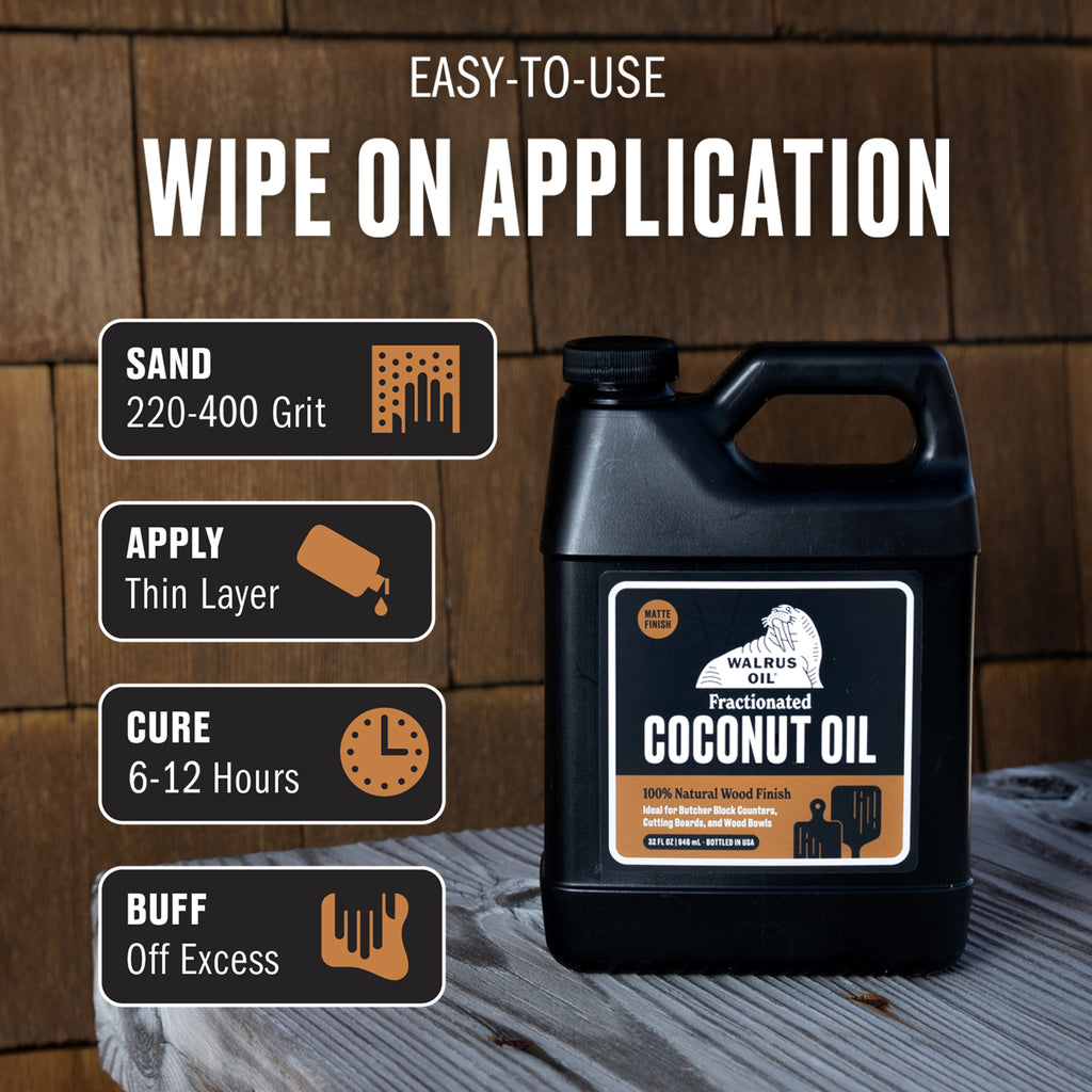 I was intrigued to try the Coconut Oil. It did not disappoint. Easy to apply and really brought out the woods natural color! Love it.